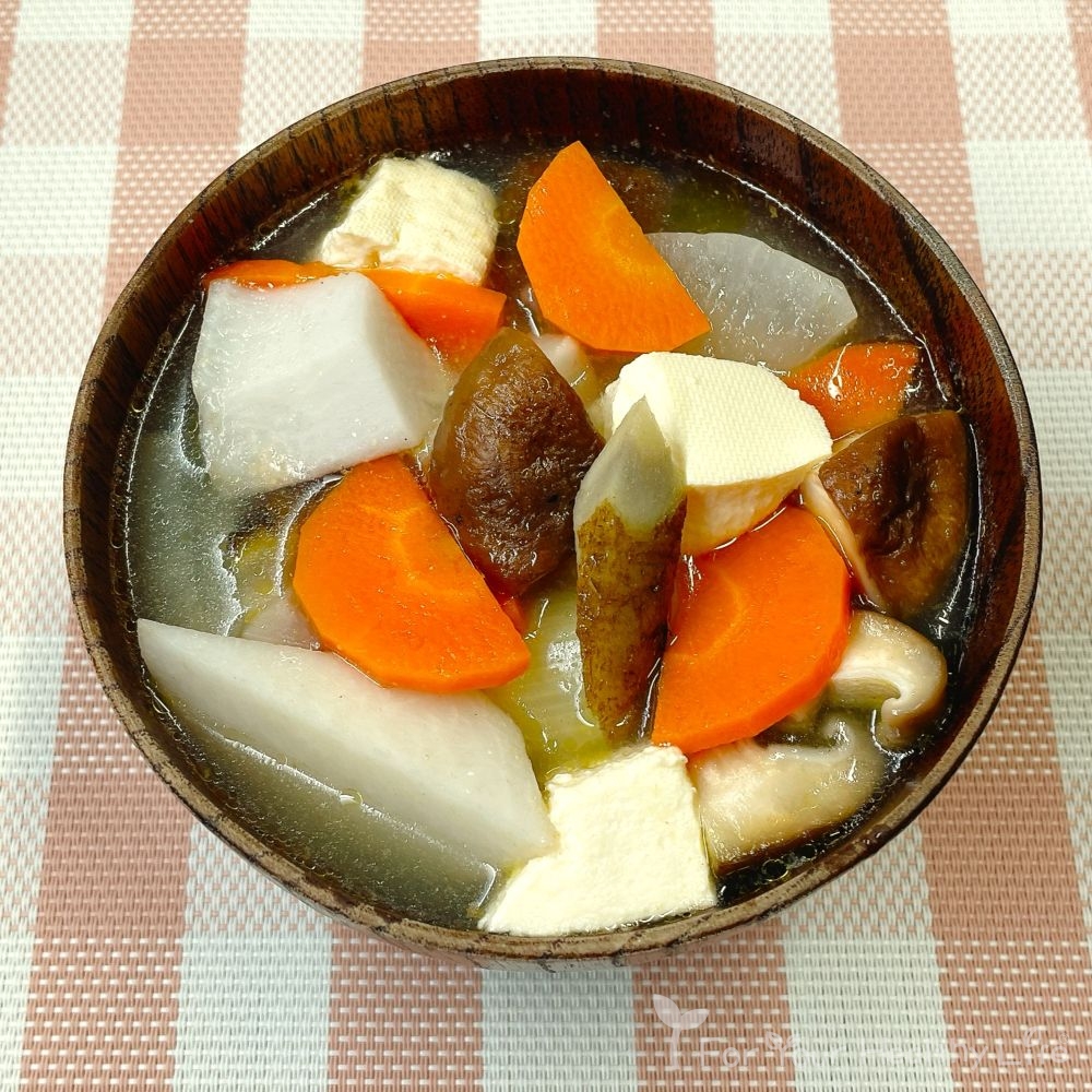 | ① | 里芋は皮をむいて、1cm幅の輪切りにする。ごぼうは縦に3等分にし、板状に切る。レンジ対応容器に入れてふわっとラップし電子レンジ(600W)で、3分加熱する。 |