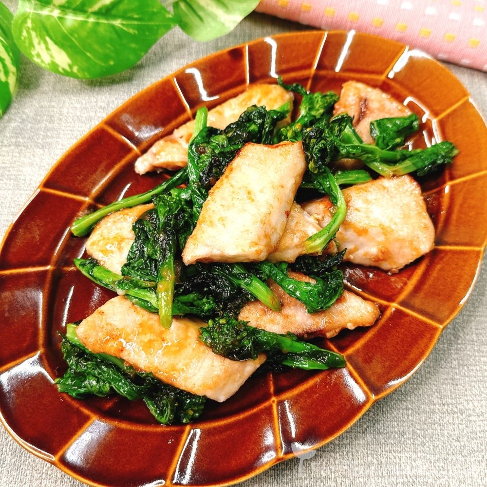 | ② | フライパンにベーコンを入れて火にかけ脂を出しながら炒める。根張星とにんにくの芽を加え炒める。酒を入れてフタをし、5分蒸し焼きにする。 |