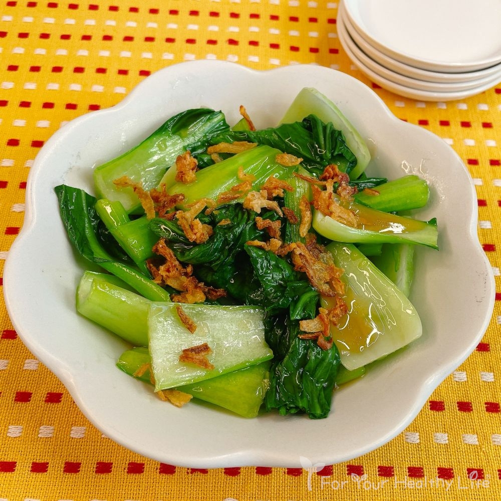 | ① | チンゲン菜はよく洗い、一口幅に切る。レンジ対応容器に入れて、ふわっとラップし、電子レンジ(600W)で2分加熱する。 |