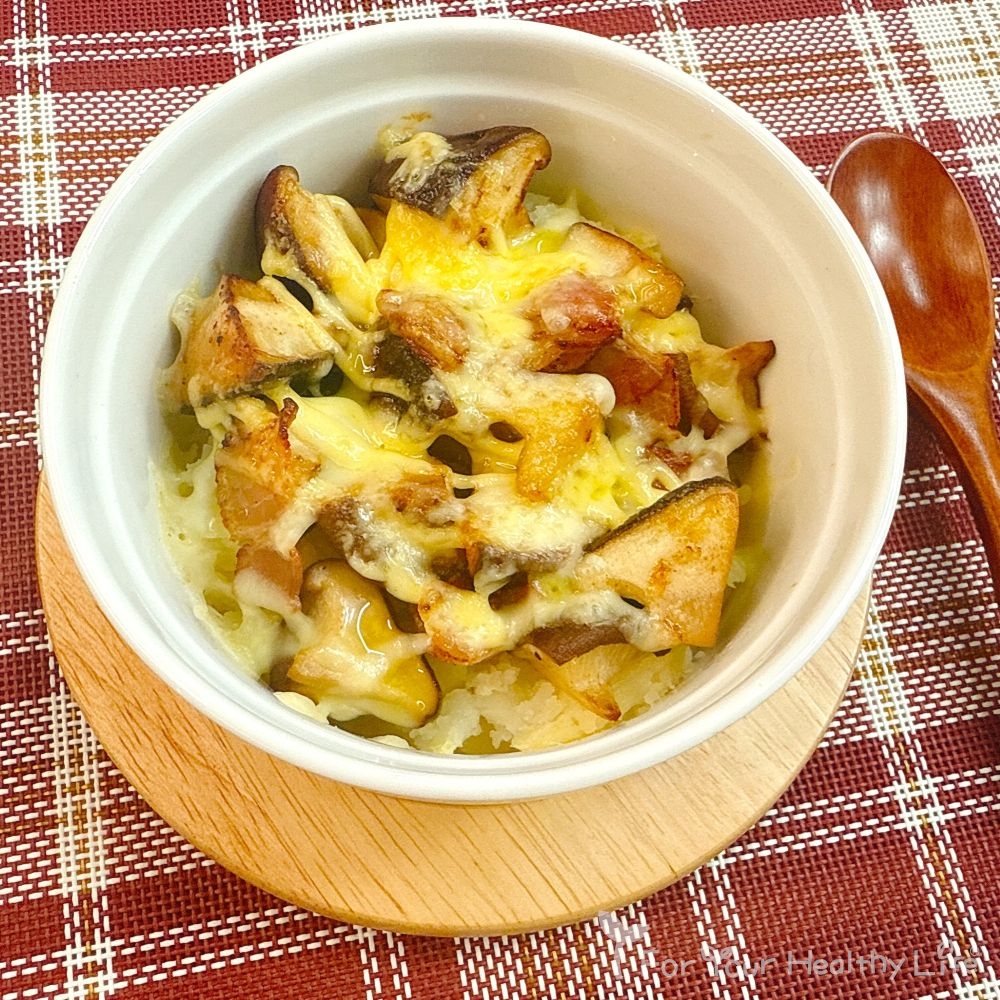 | ① | 椎茸は軸をとってスライスする。レンジ対応容器に入れてふわっとラップをかけ、電子レンジ(600W)で2分加熱する。 |