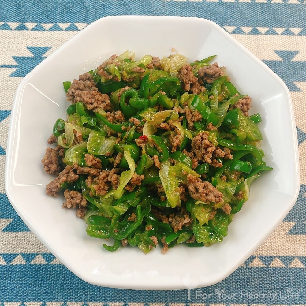 ① | ピーマンは手でつぶし、亀裂を入れておく。電子レンジ(600W)で5分加熱する。 |